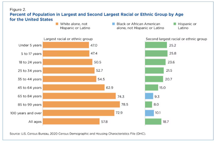 • Ethnic makeup + Age — Everyone knows the U.S. is ethnically diverse, but the intensity of that is particularly felt when we cross this diversity by age, as Figure 2 reveals. For under 35 America, the U.S. is a 50/50 caucasian/non-caucasian split — for Americans over 55 that split is closer to 75/25. The market with the dynamic that most closely reflects this is Brazil, whose 45+ population identifies as “white” and under 45 does not.