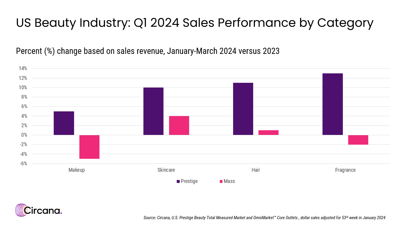 CHICAGO – U.S. prestige beauty industry sales revenue grew by 9% in the first quarter (Q1), compared to the same period in 2023, according to . In comparison, mass market beauty sales experienced a year over year increase of 2%.
