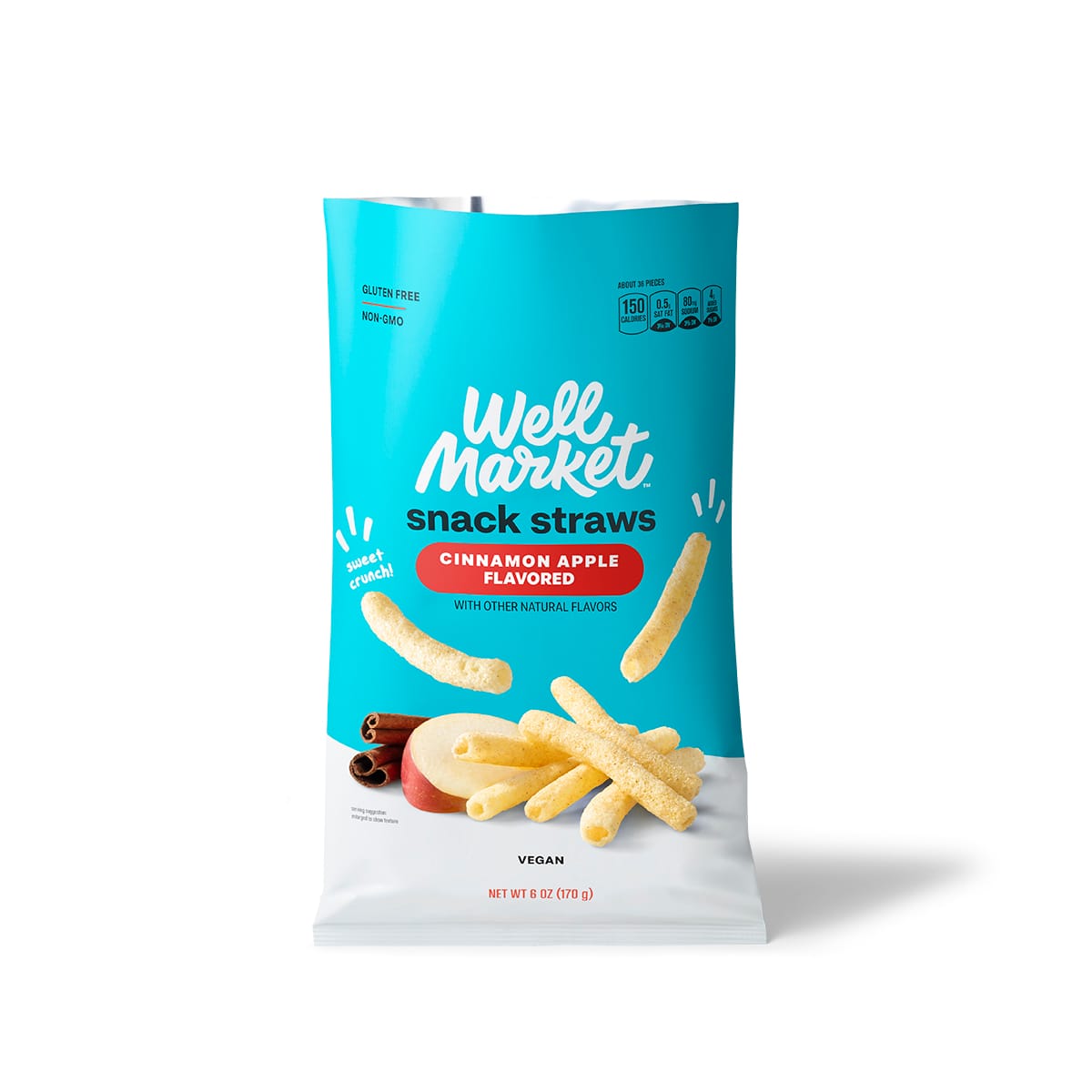 - Cinnamon Apple Flavored Snack Straws: This vegan, gluten-free and non-GMO snack brings two irresistible flavors together in one craveable snack. The sweet taste of apples teams up with a sprinkling of cinnamon for a burst of mouthwatering flavor in every bite.
